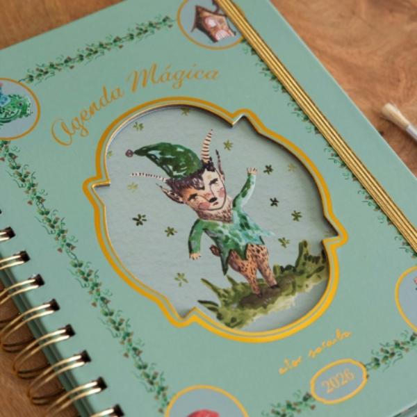 La agenda mágica 2026 de Aitor Saraiba está dedicada a los espíritus del hogar: hadas, duendes y seres legendarios que te protegen si sabes invocarlos. Cada mes presenta seres, plantas y saberes populares ilustrados con pinturas llenas de simbolismo. Con formato semana vista, stickers, bolsillo y diseño espiritual, es ideal para quienes creen en la magia de lo cotidiano.