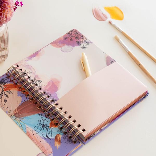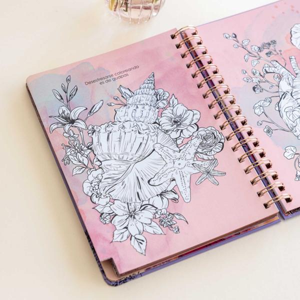- Cantos estampados con foil metalizado de color cobre