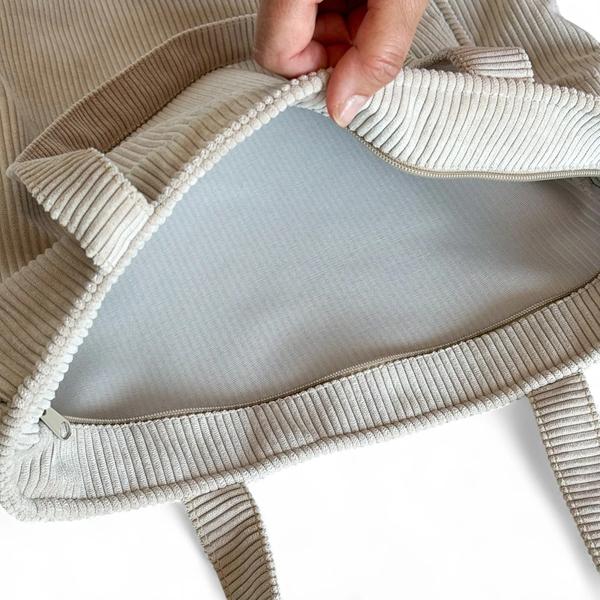 La Bolsa Cremallera Tofe combina estilo, comodidad y practicidad. Con su tejido de pana gruesa y un color liso muy combinable, es ideal para complementar cualquier look.