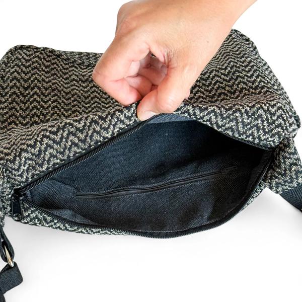 El Bolso Pequeño Dana de la marca española De La Mur es el equilibrio perfecto entre practicidad, estilo y diseño. Confeccionado en tejido grueso de jacquard con estampado de espiga en tonos beige y negro, es un bolso ideal para quienes buscan una bandolera cómoda, elegante y funcional para el día a día.