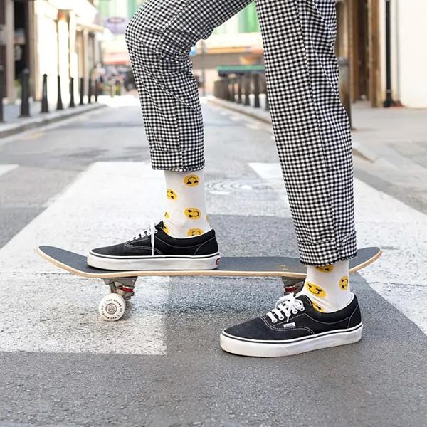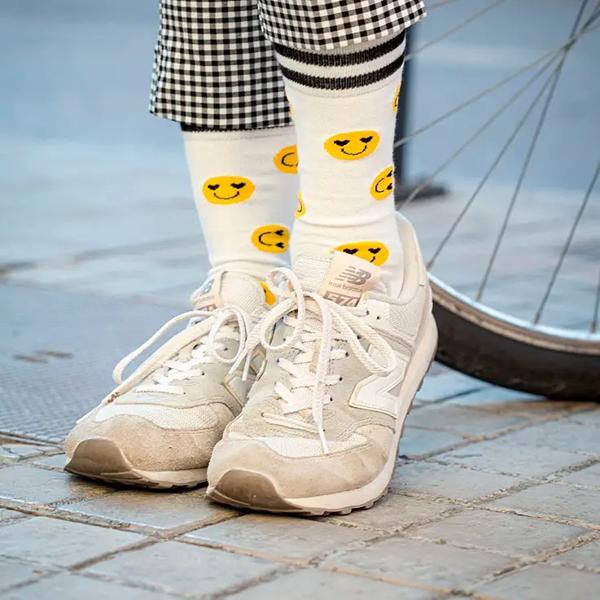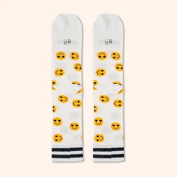 Estos calcetines blancos de aire retro con emojis de caritas sonrientes y la frase