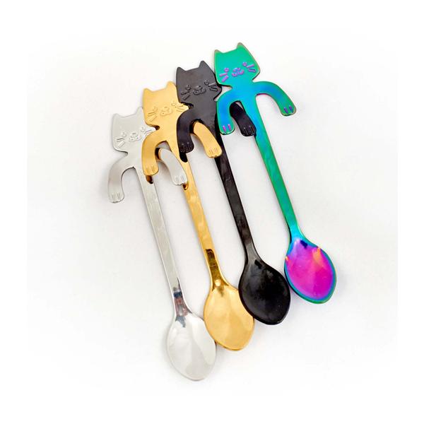 Estas cucharas de café originales tienen forma de pequeños gatetes curiosos que parecen