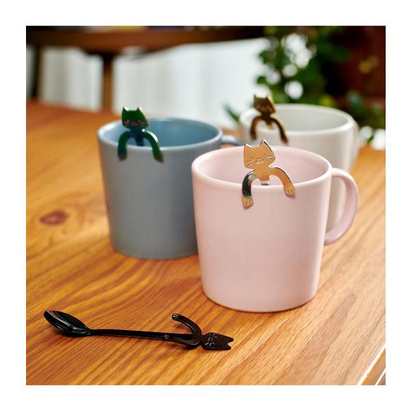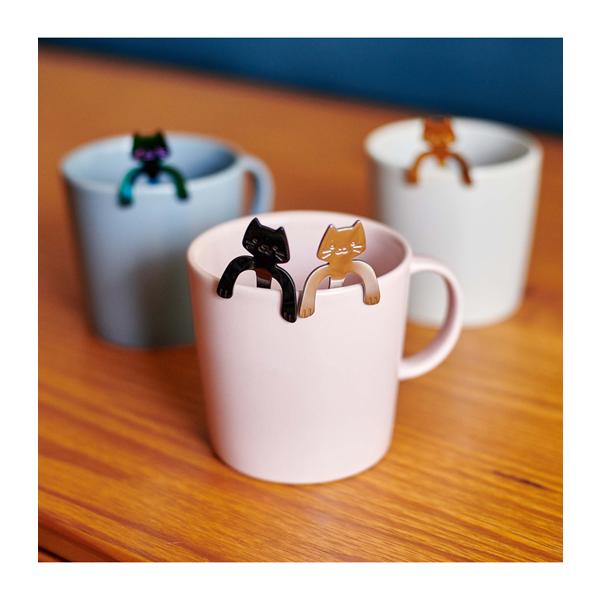 cucharillas de café con forma de gatitos que se asoman con gracia desde el borde de la taza.