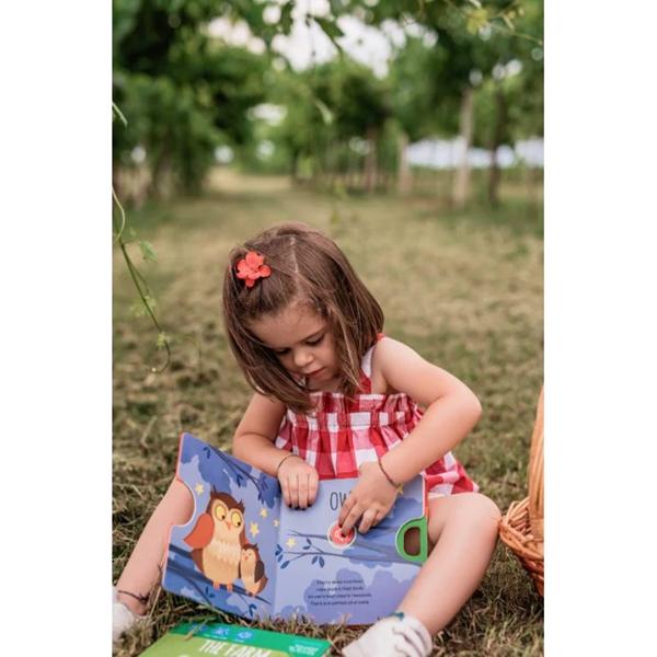 Lee sus aventuras, pulsa los botones y aprende a reconocer sus gritos. Tira y empuja de la manivela: una dulce melodía acompañará tu lectura.