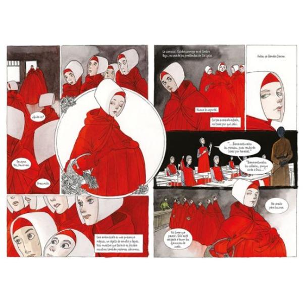 La historia transcurre en la república totalitaria de Gilead, donde las mujeres están privadas de derechos: no pueden trabajar, leer o tener amistades. Defred, la protagonista (“Críada”), vive bajo un régimen en el que su único “propósito” es la reproducción. En una sociedad donde la fertilidad es un bien escaso, las criadas sólo “valen” si pueden concebir. A través de sus recuerdos, la novela gráfica nos transporta a sus tiempos anteriores: cuando tenía nombre, voz y libertad.