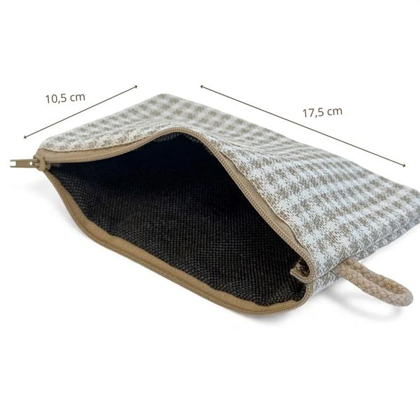 El mini neceser Visón De La Mur es el complemento ideal para mantener organizados tus pequeños imprescindibles con un diseño atemporal. Su estampado vichy aporta un toque elegante y versátil perfecto para cualquier ocasión.