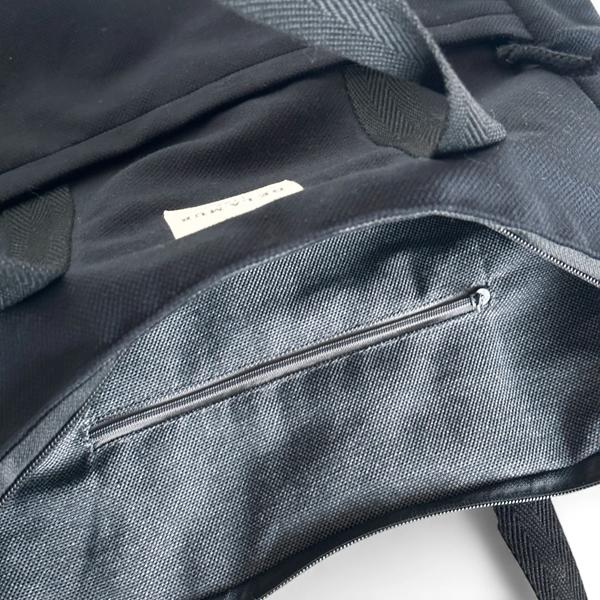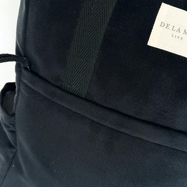 La Mochila Bolso Aza de De La Mur combina elegancia y funcionalidad. Fabricada con dos tejidos: terciopelo negro en la parte superior y tejido liso negro en la inferior, ofrece un diseño sofisticado y atemporal.