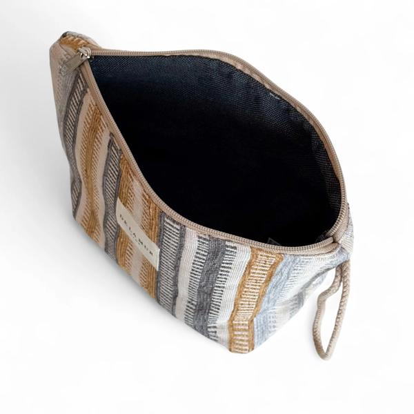 El neceser grande Tron combina practicidad y estilo. Su estampado a rayas multicolor lo convierte en un accesorio único, ideal como regalo original o para uso personal diario.