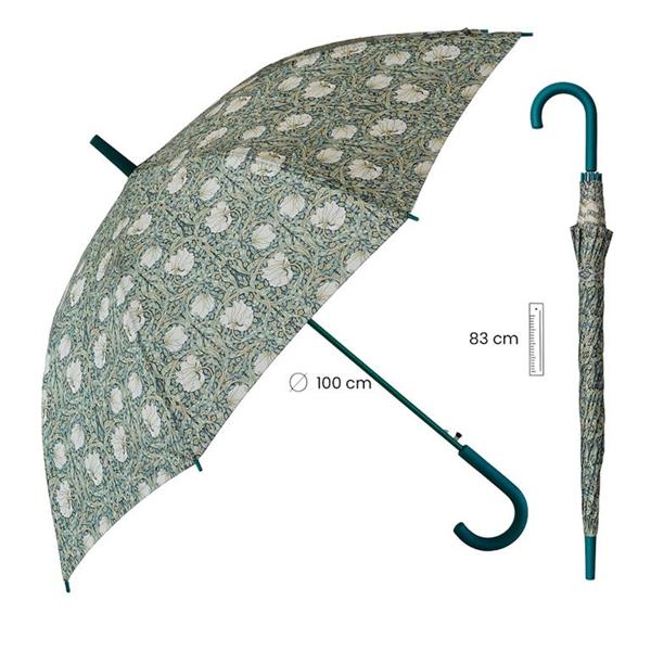 Añade un toque de arte y sofisticación a los días de lluvia con este paraguas de bastón estampado con el diseño «Pimpinella» de William Morris.