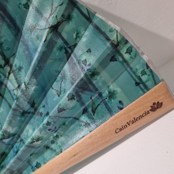 Set de Foulard y Abanico de Seda Artesanal. Verdil