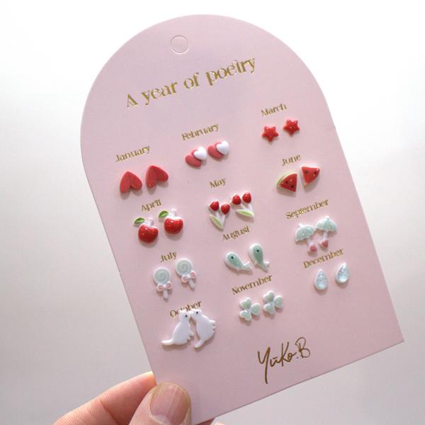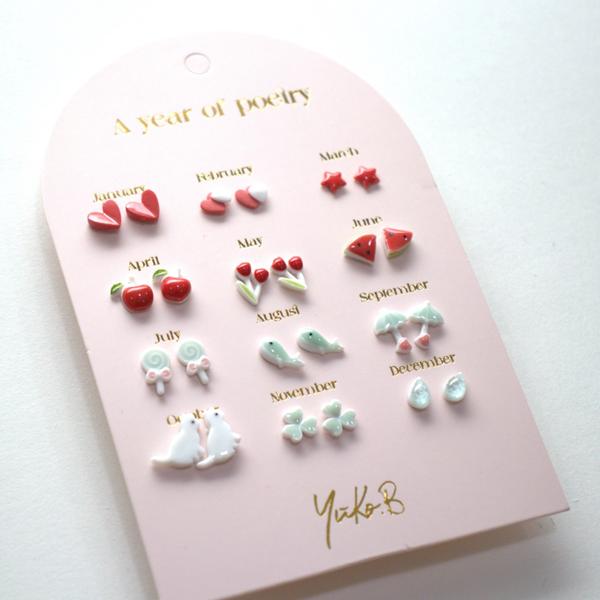 Set de 12 pares de pendientes infantiles, para cada mes del año.