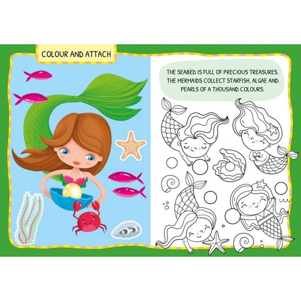 Un libro de actividades ambientado en el mundo de las sirenas. Calcomanías, pegatinas, escenarios, juegos….muchas horas de diversión.